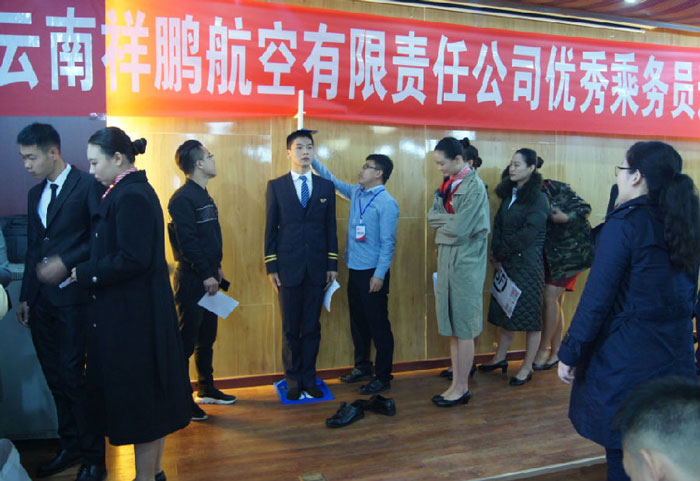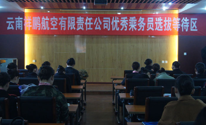 云南祥鹏航空此次在太原理工大学继续教育学院乘务员招聘会中共有30余人通过形象初选,并在初选完成之后进行了英语测试和综合素质考核。