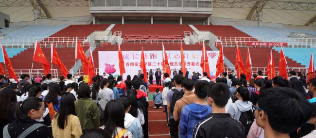 4月16日下午,我校在瑶湖体育场举行了第20届心理文化节开幕式暨心理素质拓展基地体验日活动。副校长刘俊出席开幕式,学生处负责人、学工副书记、心理辅导员、心理联络员、心理教育中心全体教师、各学院学生代表逾500人参加了开幕式。