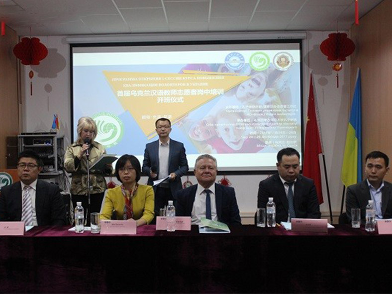 在开班仪式上,齐百经对所有志愿者教师的到来表示欢迎,希望志愿者能把握此次培训机会,提高汉语教学水平。中国驻乌克兰大使馆教育处一秘王大军在致辞中表示,希望通过志愿者们搭建的汉语桥梁,紧密联结中乌两国人民的友谊。中国驻敖德萨总领馆教育领事俞周琳肯定了汉语教师志愿者们的工作对于中乌文化交流的重要意义,希望志愿者们当好民间文化大使,增进中乌两国的了解、信任和友谊。