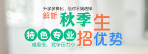 特色专业院校春季招生主要是为学生提供额外的1次入学机会,在可以参加正规大学录取的同时,获取特色专业院校的另1个"入场券",无忧高考。特色专业院校秋季招生主要面向高中毕业生及同等学历的学生等都可报名参加,通过考核的学生可选择秋季入学,同样可在高考后入学。